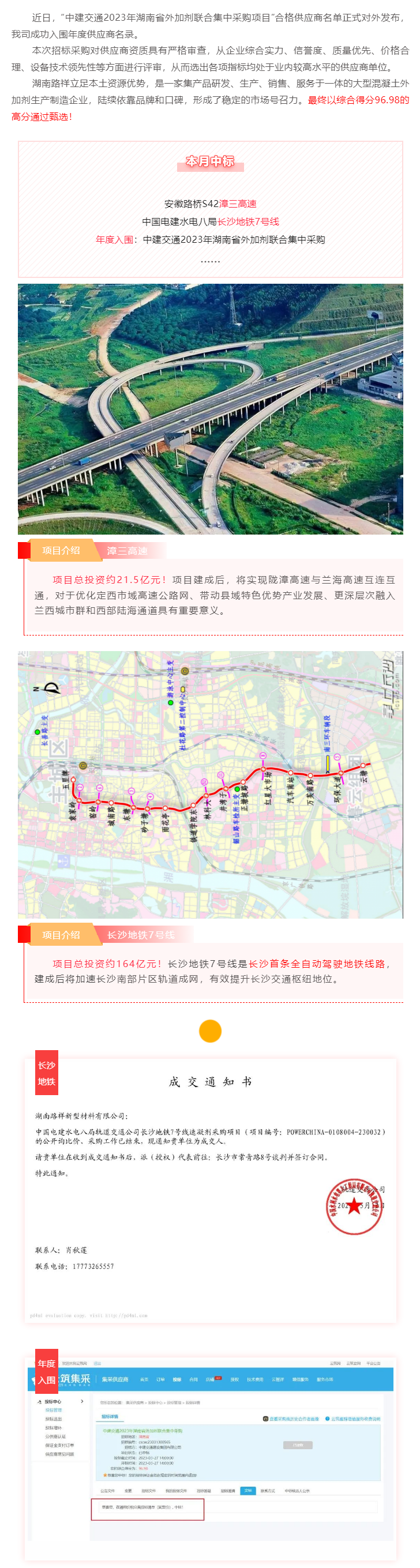 喜報!湖南路祥入圍中建交通2023年湖南省外加劑聯合集中采購項目合格供應商